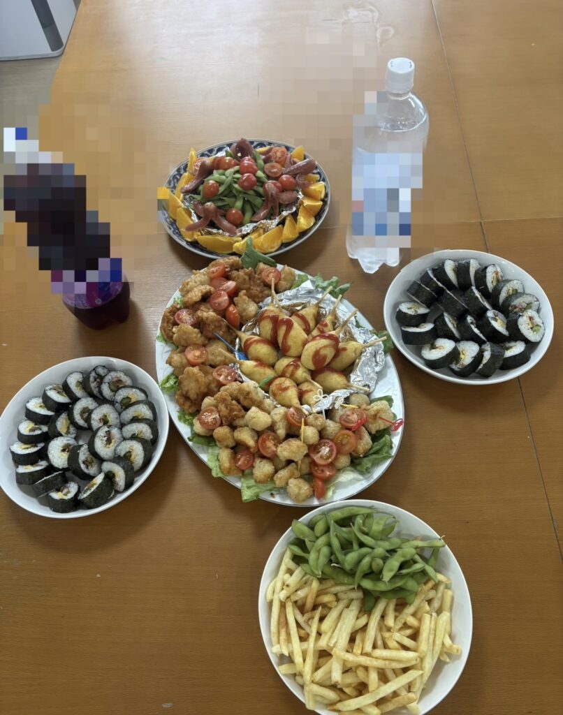 バイキング形式で皆様好きな物を取って笑顔で食事をされておりました。